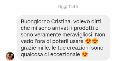 Carissima, mi è arrivata la tua spedizione! Un pezzo più bello dell'altro!! Davvero non so come ringraziarti...più vedo le tue creazioni più mi danno un senso di "rinascita" ❤️